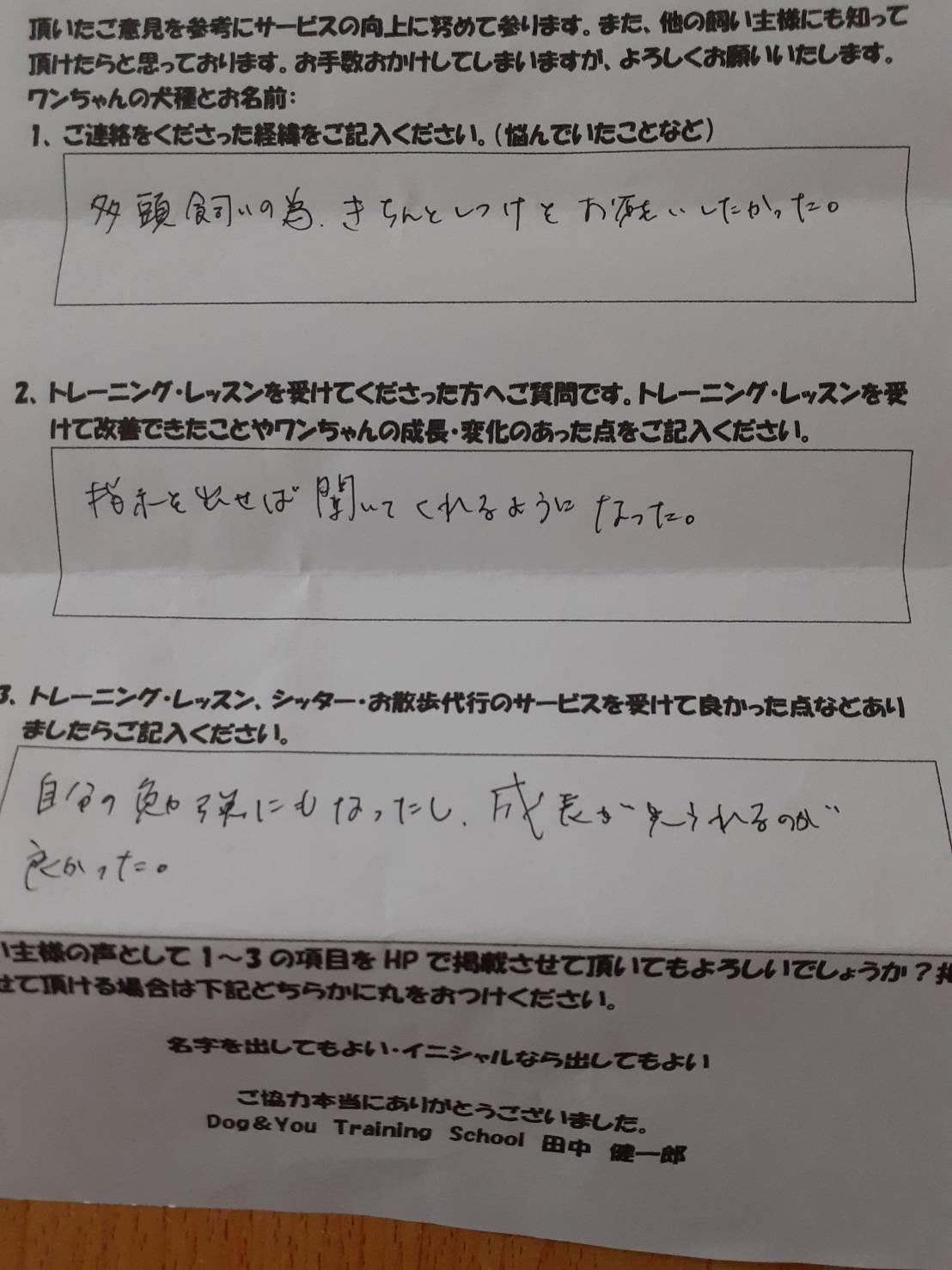 3、トレーニング・レッスン、シッター・お散歩代行を受けて良かった点などありましたらご記入ください。